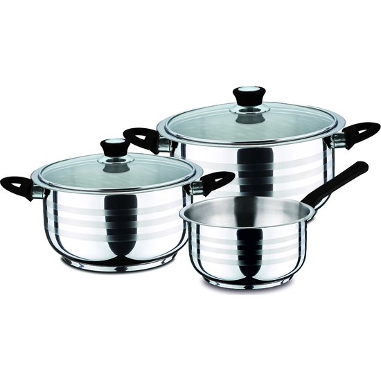 INCLUYE: 1 Cazo. 2 Cacerolas con tapa.