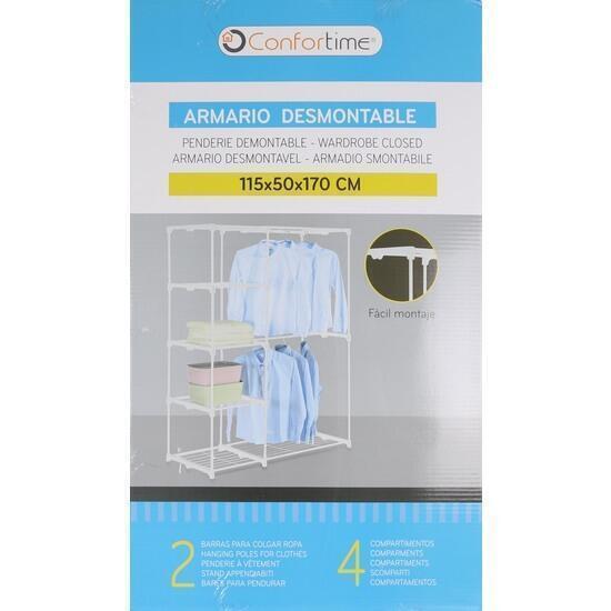 El Armario Desmontable Confortime se monta rápidamente, sin necesidad de herramientas complicadas. Este aspecto práctico facilita su uso inmediato y permite que sea trasladado con facilidad cuando sea necesario.