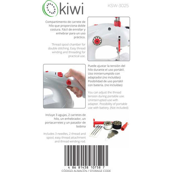 No dejes pasar la oportunidad de tener una Máquina de Coser Portátil de confianza como la Kiwi en tu hogar. Perfecta para arreglos rápidos y como compañera de tus proyectos creativos. ¡Llévala contigo a donde vayas!