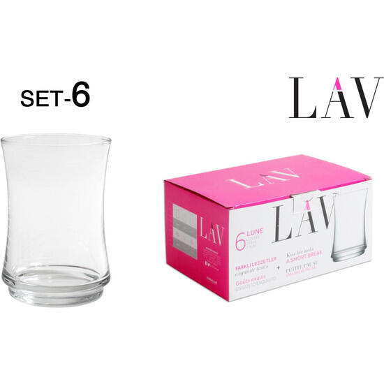 No esperes más para adquirir el Set 6 vasos de vidrio 225cc Lune de Lav. Añádelos a tu carrito y lleva la elegancia a tu mesa.