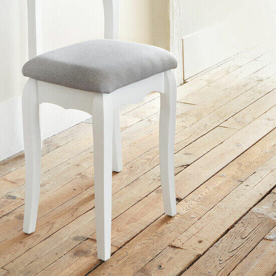 El taburete tocador Atmosphera es el complemento perfecto para darle un ambiente romántico y acogedor a tu habitación. Diseñado con suaves curvas, este taburete se adapta fácilmente a cualquier estilo decorativo.